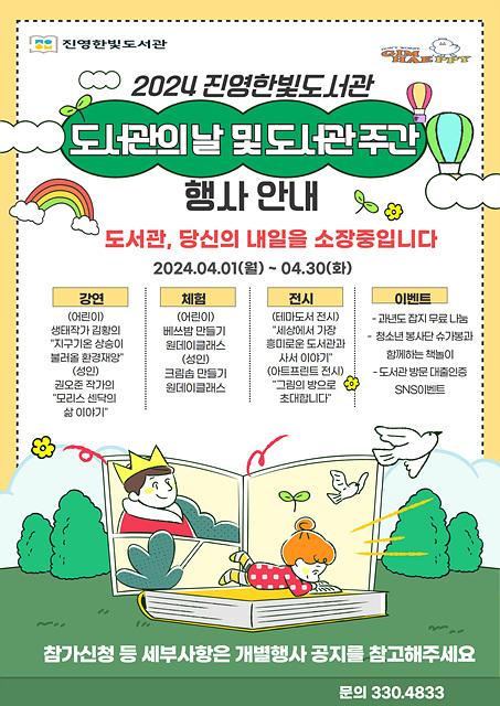 [½Åµ¿¾Æ¹æ¼Û´º½º=ÃÖ¼ÛÈ­±âÀÚ] ±èÇØ½Ã Áø¿µÇѺûµµ¼­°ü(°üÀå ±è±âÇý)Àº ¡®µµ¼­°üÀÇ ³¯(4.12)¡¯°ú ¡®µµ¼­°ü ÁÖ°£(4.12~18)¡¯À» ±â³äÇØ 4¿ù ÇÑ ´Þ°£ µµ¼­°ü ÀÏ¿ø¿¡¼­ ´Ùä·Î¿î µ¶¼­¹®È­ Çà»ç¸¦ °³ÃÖÇÑ´Ù°í 13ÀÏ ¹àÇû´Ù. µµ¼­°ü¿¡ ´ëÇÑ ±¹¹ÎÀÇ ÀÌÇØ¿Í °ü½ÉÀ» ³ôÀ̰í ÀÌ¡¦
