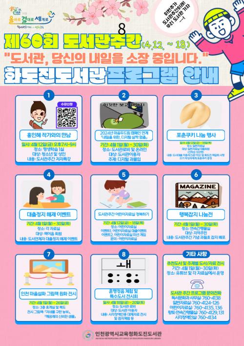 [½Åµ¿¾Æ¹æ¼Û ÀÎõ= À±¹Î½Ä ±âÀÚ]ÀÎõ±¤¿ª½Ã±³À°Ã»È­µµÁøµµ¼­°ü °üÀå À̼ҿíÀº µµ¼­°üÀÇ ³¯(4¿ù 12ÀÏ)°ú Á¦60ȸ µµ¼­°ü ÁÖ°£(4¿ù 12ÀÏ~18ÀÏ)À» ¸Â¾Æ ¡®µµ¼­°ü, ´ç½ÅÀÇ ³»ÀÏÀ» ¼ÒÀå ÁßÀÔ´Ï´Ù¡¯¸¦ ÁÖÁ¦·Î 4¿ù ÇÑ ´Þ°£ ´Ùä·Î¿î Çà»ç¸¦ ±âȹ ¿î¿µÇÑ´Ù. Çà»ç´Â ÀÛ°¡¿ÍÀÇ ¸¸¡¦