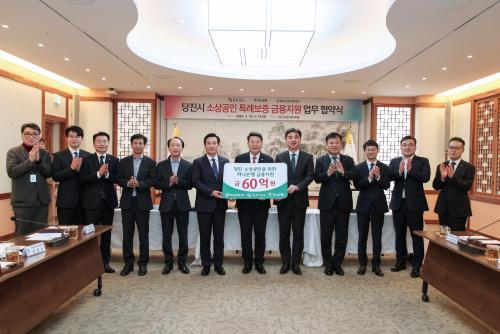 [½Åµ¿¾Æ¹æ¼Û=ÀÌÀçö ±âÀÚ]´çÁø½Ã´Â 19ÀÏ ½Ãû ÇØ³ª·ç Ȧ¿¡¼­ ¡®¼Ò»ó°øÀΠƯ·Ê º¸Áõ ±ÝÀ¶Áö¿øÀ» À§ÇÑ ¾÷¹«Çù¾à¡¯À» ü°áÇß´Ù°í ¹àÇû´Ù. À̹ø Ư·Ê º¸Áõ Áö¿ø ¾÷¹«Çù¾àÀº ¿À¼ºÈ¯ ´çÁø½ÃÀå°ú À̵¿¿­ ÇϳªÀºÇà ºÎÇàÀå, ±èµÎÁß Ãæ³²½Å¿ëº¸ÁõÀç´Ü ÀÌ»çÀåÀÌ Âü¼®ÇØ ±Ý¸® Àλó¡¦