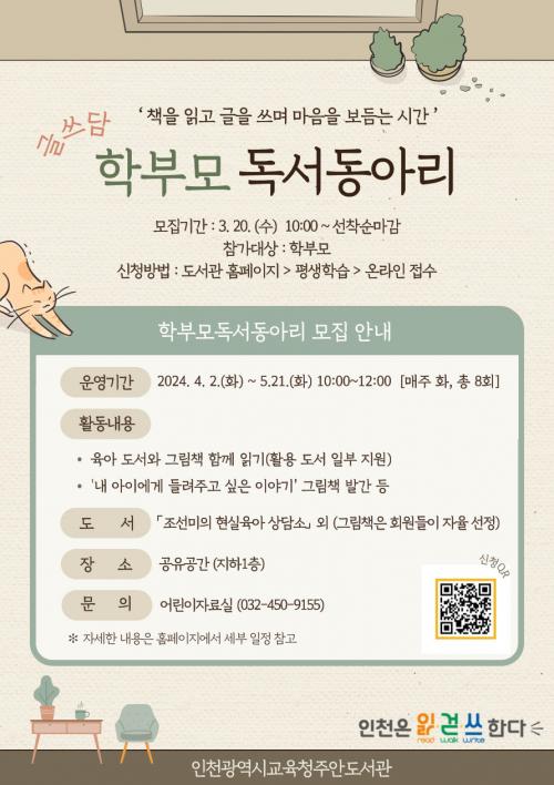 [½Åµ¿¾Æ¹æ¼Û ÀÎõ=À±¹Î½Ä±âÀÚ]ÀÎõ±¤¿ª½Ã±³À°Ã»Á־ȵµ¼­°üÀº 2024³â ÀаȾ² ½Ã¹Î¹®È­È®»êÀ» À§ÇØ Çкθ𵶼­µ¿¾Æ¸® ¡¸±Û¾²´ã¡¹ ȸ¿øÀ» 20ÀϺÎÅÍ ¼±Âø¼ø ¸ðÁýÇÑ´Ù. Çкθ𵶼­µ¿¾Æ¸®´Â 4¿ù 2ÀϺÎÅÍ 5¿ù 21ÀϱîÁö ÃÑ 8ȸ ¿î¿µÇϸç À°¾Æ¿Í ±×¸²Ã¥¿¡ °ü½É ÀÖ´Â Çкθðµé¡¦