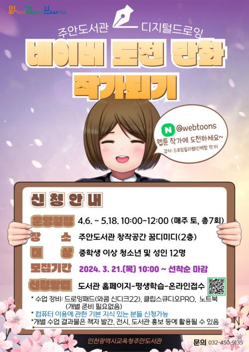 [½Åµ¿¾Æ¹æ¼Û ÀÎõ=À±¹Î½Ä±âÀÚ]ÀÎõ±¤¿ª½Ã±³À°Ã»Á־ȵµ¼­°üÀº ÁßÇлý ÀÌ»ó û¼Ò³â°ú ¼ºÀÎÀ» ´ë»óÀ¸·Î À¥Å÷ ¸¸È­ ÀÛ°¡ µµÀü ÇÁ·Î±×·¥ ¡®³×À̹ö µµÀü ¸¸È­ ÀÛ°¡µÇ±â¡¯¸¦ 4¿ù 6ÀϺÎÅÍ ¸ÅÁÖ Åä¿äÀÏ ÃÑ 7ȸ ¿î¿µÇÑ´Ù. ÇÁ·Î±×·¥Àº Çѱ¹ À¥Å÷ÀÇ À§»ó°ú °ü½ÉÀ» ¹Ý¿µÇØ Áø·Î ¶Ç¡¦