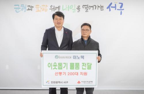 [½Åµ¿¾Æ¹æ¼Û ÀÎõ=À±¹Î½Ä±âÀÚ]ÀÎõ ¼­±¸ ±¸Ã»Àå °­¹ü¼®Àº (ÁÖ)À̳ëÅØ(´ëÇ¥ °­Å¼±)À¸·ÎºÎÅÍ Áö³­ 20ÀÏ ¾î·Á¿î ÀÌ¿ôÀ» À§ÇÑ ¼±Ç³±â 200´ë¸¦ Àü´Þ¹Þ¾Ò´Ù°í ¹àÇû´Ù. À̳¯ Àü´Þ ¹ÞÀº ¼±Ç³±â´Â ¼­±¸ ³» Àú¼Òµæ Áֹο¡°Ô Áö¿øµÉ ¿¹Á¤ÀÌ´Ù. ¢ßÀ̳ëÅØÀº ÀÎõ ¼­±¸¿¡ ¼ÒÀçÇÏ¡¦