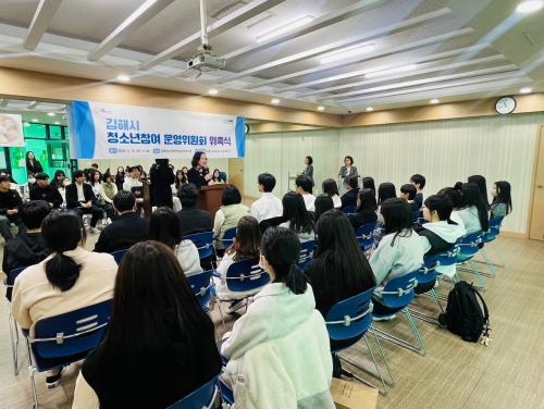 [½Åµ¿¾Æ¹æ¼Û´º½º=ÃÖ¼ÛÈ­±âÀÚ] ±èÇØ½Ã´Â Áö³­ 16ÀÏ, ±èÇØÃ»¼Ò³â¹®È­ÀÇÁý¿¡¼­ Á¦20±â ±èÇØ½Ã û¼Ò³â Âü¿©・¿î¿µÀ§¿øÈ¸ À§Ã˽ÄÀ» °¡Á³´Ù. Áö¿ªÀÇ Áß‧°íµîÇлýÀ¸·Î ±¸¼ºµÈ Âü¿©À§¿øÈ¸ 16¸í, ¿î¿µÀ§¿øÈ¸ 11¸í, ÃÑ 27¸íÀÌ À§ÃËÀåÀ» ¼ö¿© ¹Þ¾ÒÀ¸¸ç, º»°ÝÀûÀÎ ¡¦