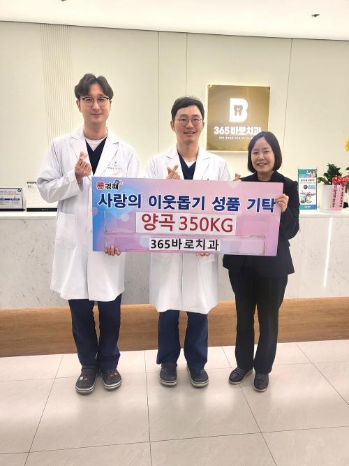 [½Åµ¿¾Æ¹æ¼Û´º½º=ÃÖ¼ÛÈ­±âÀÚ] ±èÇØ½Ã ÀåÀ¯1µ¿¿¡ ¼ÒÀçÇÑ 365¹Ù·ÎÄ¡°ú°¡ Áö³­ 14ÀÏ °³¿ø ÃàÇÏ·Î ¹ÞÀº ½Ò(¹é¹Ì 350kg)À» ÀåÀ¯1µ¿¿¡ ±âŹÇß´Ù. 365¹Ù·ÎÄ¡°ú ±Çµ¿È¯, ÀÌÃæ¸¸ ´ëÇ¥¿øÀåÀº ¡°°ü³» ¾î·Á¿î ÀÌ¿ôµéÀ» À§ÇØ °³¿ø ¶§ ȭȯ ´ë½Å ¹ÞÀº ½ÒÀ» Áö¿ª»çȸ¿¡ ȯ¿øÇÏ°í ½Í¡¦