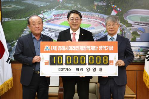 SY°¡½º, ±èÇØ¹Ì·¡ÀÎÀçÀåÇбâ±Ý 1õ¸¸¿ø ±âŹ