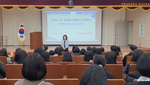 [½Åµ¿¾Æ¹æ¼Û Àü³²¿©¼ö=À̽ŵ¿±âÀÚ]Àü¶ó³²µµ±³À°Ã»ÀÌ 22~23ÀÏ Àü³²±³À°Ã» üÀ°±³À°¼¾ÅÍ¿¡¼­ ¡®½Å±Ô ¿µ¾ç±³»ç ¿ª·®°­È­ ¿¬¼ö¡¯¸¦ ¿­°í, ³»½ÇÀÖ´Â Çб³±Þ½Ä ¿î¿µ Áö¿ø¿¡ ³ª¼¹´Ù. Áö³­ 8ÀÏ¿¡ À̾î 2ȸ° ¿­¸° À̹ø ¿¬¼ö´Â 2024Çг⵵ ½Å±Ô ÀÓ¿ëµÈ ¿µ¾ç±³»ç 36¸íÀ» ´ë»óÀ¸¡¦