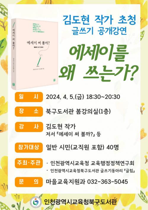 [½Åµ¿¾Æ¹æ¼Û ÀÎõ=À±¹Î½Ä±âÀÚ]ÀÎõ±¤¿ª½Ã±³À°Ã»ºÏ±¸µµ¼­°ü(°üÀå ÀÓÇö±¹) ±Û¾²±â µ¿¾Æ¸® ¡®±ÛÈû¡¯Àº ÀÛ°¡¿Í ÇÔ²²ÇÏ´Â ¿¡¼¼ÀÌ ¾²±â ¿öÅ©¼ó ¼ö°­»ýÀ» 26ÀϺÎÅÍ ¸ðÁýÇÑ´Ù. ¡®±ÛÈû¡¯Àº ºÏ±¸µµ¼­°ü ÀÚÀ²ÇнÀµ¿¾Æ¸®ÀÌÀÚ ÀÎõ±³À°ÇàÁ¤Á¤Ã¥¿¬±¸È¸ÀÇ ±Û¾²±â µ¿¾Æ¸®´Ù. ¿¡¼¼ÀÌ¡¦