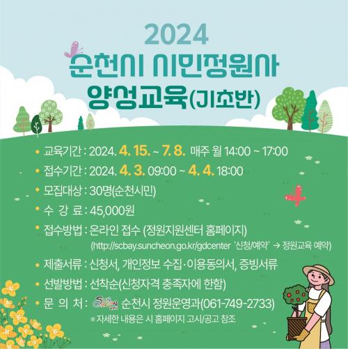 [½Åµ¿¾Æ¹æ¼Û ¼øÃµ=±è¿ëÈÆ ±âÀÚ] ¼øÃµ½Ã(½ÃÀå ³ë°ü±Ô)´Â Á¤¿ø°ú ½Ä¹°¿¡ °ü½É ÀÖ´Â ¼øÃµ½Ã¹ÎÀ» ´ë»óÀ¸·Î ½Ã¹ÎÁ¤¿ø»ç ¾ç¼º±³À°À» ÁøÇàÇÑ´Ù°í ¹àÇû´Ù. ½Ã´Â ÀÏ»ó ¼Ó Á¤¿ø¹®È­ È®»ê°ú Á¤¿ø°ü¸® ÀÎÀç ¾ç¼ºÀ» À§ÇØ ¿î¿µÇÏ´Â ½Ã¹ÎÁ¤¿ø»ç´Â ¿ÃÇØ ¡®±âÃʰúÁ¤¡¯°ú ¡®½ÉÈ­°úÁ¤¡¯¡¦