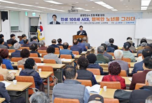 [½Åµ¿¾Æ¹æ¼Û°íÈï=¹Ú±¤¿Á±âÀÚ] °íÈﱺ(±º¼ö °ø¿µ¹Î)Àº Áö³­ 28ÀÏ (»ç)´ëÇѳëÀÎȸ °íÈﱺÁöȸ ºÎ¼³ ³ëÀδëÇÐ(¿ø) °­Àǽǿ¡¼­ ³ëÀδëÇлý 100¿© ¸íÀÌ Âü¼®ÇÑ °¡¿îµ¥ ¡®Àλý 100¼¼ ½Ã´ë, ÇູÇÑ ³ë³âÀ» ±×¸®´Ù¡¯¶ó´Â ÁÖÁ¦·Î Ư°­À» ÁøÇàÇß´Ù. ³ëÀδëÇÐ(¿ø) ÃÊûÀ¸·Î ¸¶·Ã¡¦