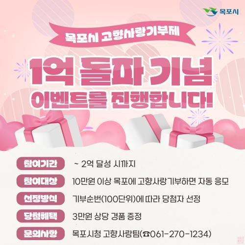[½Åµ¿¾Æ¹æ¼Û=±è±¤½Ä±âÀÚ] ¸ñÆ÷½Ã°¡ ±Ý³âµµ 81Àϸ¸¿¡ °íÇâ»ç¶û±âºÎ±Ý 1¾ï µ¹ÆÄ¸¦ ±â³äÇϸç Âü¿© À̺¥Æ®¸¦ ÃßÁøÇÑ´Ù. À̹ø ÁøÇàµÇ´Â À̺¥Æ®´Â °íÇâ»ç¶û±âºÎÁ¦ÀÇ È°¼ºÈ­¸¦ ¸ñÇ¥·Î ¿¹ºñ±âºÎÀÚÀÇ Èï¹Ì¸¦ À¯¹ßÇÏ°í ±âºÎ Âü¿©ÀÇ º¸¶÷°ú Ãß°¡ °æÇ° ȹµæÀÇ Áñ°Å¿òÀ» ÇÔ²² ´©¸±¡¦