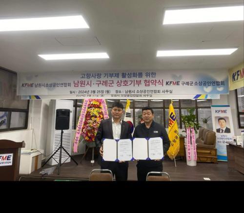 [½Åµ¿¾Æ¹æ¼Û ±¸·Ê=À±¼ºÁÖ ±âÀÚ] Àü³² ±¸·Ê±º°ú ÀüºÏ ³²¿ø½ÃÀÇ ¼Ò»ó°øÀο¬ÇÕȸ ȸ¿øµéÀÌ °íÇâ»ç¶û±âºÎÁ¦ Ȱ¼ºÈ­¿Í Áö¿ª »ó»ýÇù·ÂÀ» À§ÇØ »óÈ£±âºÎ¿¡ ³ª¼¹´Ù. µÎ Áö¿ª ¼Ò»ó°øÀο¬ÇÕȸ ȸ¿øµéÀº °íÇâ»ç¶û±âºÎÁ¦ Ȱ¼ºÈ­¿Í Áö¼ÓÀûÀÎ ±³·ù¸¦ ÅëÇÑ »ó»ýÇù·ÂÀ» À§ÇØ ±âºÎ¿¡¡¦