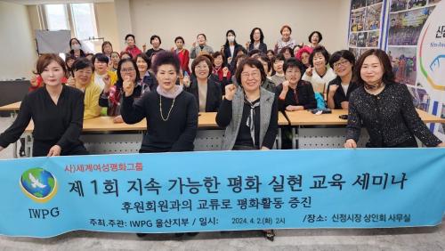 [½Åµ¿¾Æ¹æ¼Û´º½º=ÀÌÁ¶Àº±âÀÚ] ©Å¼¼°è¿©¼ºÆòÈ­±×·ì ¿ï»êÁöºÎ(IWPG, ÁöºÎÀå Ã̷ֹÊ)°¡ Áö¼Ó °¡´ÉÇÑ ÆòÈ­ ½ÇÇö ±³À° ¼¼¹Ì³ª¸¦ 2ÀÏ ¿ÀÈÄ 2½Ã ½ÅÁ¤½ÃÀå °í°´ ½°ÅÍ¿¡¼­ ȸ¿øµéÀ» ´ë»óÀ¸·Î ÁøÇàÇß´Ù. ÀüÀï°ú ºÐÀïÀ¸·Î ¾ó·èÁø Áö±¸ÃÌ¿¡ Áö¼Ó °¡´ÉÇÑ ÆòÈ­¸¦ ±¸ÃàÇÏ´Â µ¥ ÇÊ¿äÇÑ¡¦