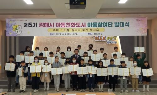 [½Åµ¿¾Æ¹æ¼Û´º½º=ÃÖ¼ÛÈ­±âÀÚ] ±èÇØ½Ã(½ÃÀå ȫſë)´Â Áö³­ 6ÀÏ ½Ãû ´ëȸÀǽǿ¡¼­ ¾Æµ¿ÀÇ Âü¿©±ÇÀÌ ½ÇÇöµÇ´Â ¾Æµ¿Ä£È­µµ½Ã¸¦ Á¶¼ºÇϱâ À§ÇÑ Á¦5±â ¾Æµ¿Ä£È­µµ½Ã ¾Æµ¿Âü¿©´Ü ¹ß´ë½ÄÀ» °³ÃÖÇß´Ù°í 8ÀÏ ¹àÇû´Ù. ÀÌ¿¡ ¾Õ¼­ ½Ã´Â Áö³­´Þ 4ÀϺÎÅÍ 22ÀϱîÁö °ü³» Ãʵî 1 ~ ¡¦
