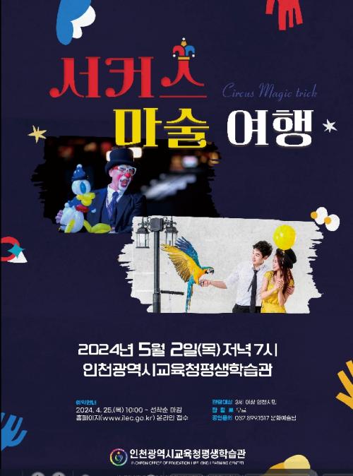 [½Åµ¿¾Æ¹æ¼Û ÀÎõ= À±¹Î½Ä±âÀÚ]ÀÎõ±¤¿ª½Ã±³À°Ã»Æò»ýÇнÀ°üÀº 5¿ù 2ÀÏ(¸ñ) 19½Ã¿¡ <¼­Ä¿½º ¸¶¼ú ¿©Çà> °ø¿¬À» °³ÃÖÇÑ´Ù. <¼­Ä¿½º ¸¶¼ú ¿©Çà>Àº ¸¶¼ú»ç, °øÁß °î¿¹»ç, ¹ú·é ¾ÆÆ¼½ºÆ®, ¹ÂÁöÄà ¹è¿ì, ¾Þ¹«»õ Á¶ÀÌ µîÀÌ Ã⿬ÇÏ´Â ½ºÅ丮 ¼­Ä¿½º±ØÀ¸·Î ¾î¸°ÀÌ¿¡°Ô µ¿½ÉÀÇ¡¦
