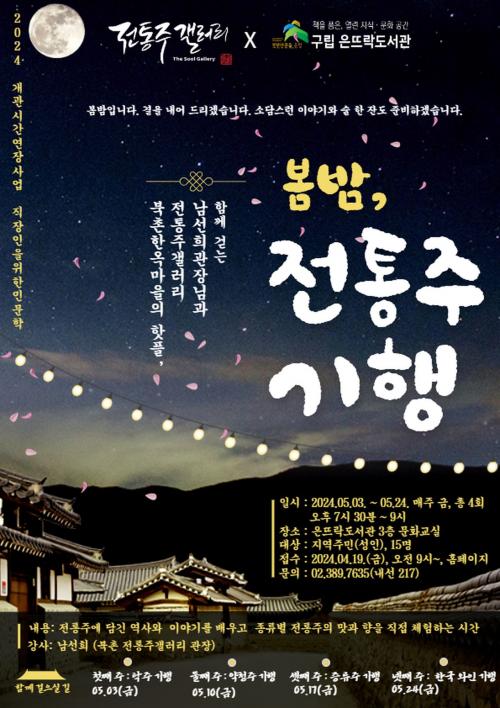 [½Åµ¿¾Æ¹æ¼Û ÀºÆò±¸=À̽ŵ¿±âÀÚ]ÀºÆò±¸´Â ±¸¸³ Àº¶ß¶ôµµ¼­°ü¿¡¼­ 3ÀϺÎÅÍ 4ÁÖ°£ ¸ÅÁÖ ±Ý¿äÀÏ Áö¿ªÁÖ¹ÎÀ» ´ë»óÀ¸·Î ¡®º½¹ã, ÀüÅëÁÖ ±âÇ࡯ ¾ß°£ °­Á¸¦ ¿î¿µÇÑ´Ù°í ¹àÇû´Ù. ºÏÃÌ ÇÑ¿Á¸¶À» ¡¯ÀüÅëÁÖ°¶·¯¸®¡®ÀÇ ³²¼±Èñ °üÀåÀÌ Á÷Á¢ ÁøÇàÇÏ´Â À̹ø °­Á´ ¿ì¸® ¼ú¿¡ ´ã¡¦
