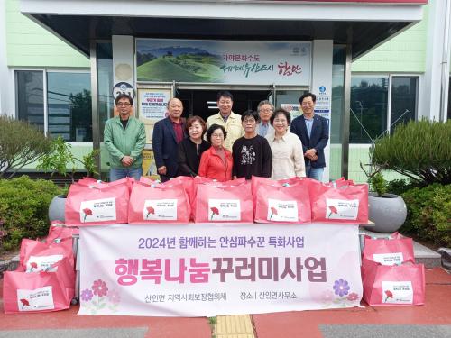 [½Åµ¿¾Æ¹æ¼Û ÇԾȱº=À̽ŵ¿±âÀÚ]ÇԾȱº »êÀθéÀº Áö¿ª»çȸº¸ÀåÇùÀÇü(°øµ¿À§¿øÀå õÀº¿í, Á¶º´¿Á)¿Í ÇÔ²² Áö³­ 7ÀÏ ¾î¹öÀ̳¯À» ¸Â¾Æ ¡®Çູ³ª´®²Ù·¯¹Ì»ç¾÷¡¯ À» ÃßÁøÇÏ¿© °í·ÉÀÇ È¦·Î¾î¸£½Å 60°¡±¸¿¡ À½½Ä ²Ù·¯¹Ì¸¦ Àü´ÞÇß´Ù. »êÀÎ¸é Æ¯È­»ç¾÷ÀÎ ¡®Çູ³ª´®²Ù·¯¹Ì»ç¡¦
