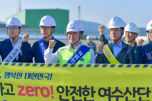 [½Åµ¿¾Æ¹æ¼Û ¿©¼ö=±è±â³² ±âÀÚ] ¿©¼ö½Ã(½ÃÀå Á¤±â¸í)°¡ 10ÀÏ ¿ÀÀü ±¹°¡»ê´Ü ³» ·Ôµ¥GSÈ­ÇÐ¢ß Áõ¼³°ø»ç ÇöÀå Ãâ±Ù±æ¿¡¼­ ¡®¿©¼ö»ê´Ü Ãâ±Ù±æ ¾ÈÀü¹®È­ Ä·ÆäÀΡ¯À» ÆîÃÆ´Ù. À̳¯ Ä·ÆäÀÎÀº Á¤±â¸í ¿©¼ö½ÃÀåÀ» ºñ·ÔÇØ °í¿ë³ëµ¿ºÎ, Çѱ¹°¡½º¾ÈÀü°ø»ç Àü³²µ¿ºÎÁö»ç, Çѱ¹»ê¡¦