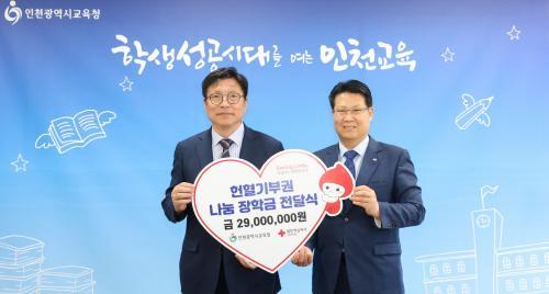 [½Åµ¿¾Æ¹æ¼Û ÀÎõ= À±¹Î½Ä±âÀÚ]ÀÎõ±¤¿ª½Ã±³À°Ã»(±³À°°¨ µµ¼ºÈÆ)Àº ´ëÇÑÀû½ÊÀÚ»ç ÀÎõÇ÷¾×¿ø°ú ÇÔ²² ´ëÇѹα¹ÀÇ ¹Ì·¡¸¦ À̲ø¾î °¥ û¼Ò³â ÀÎÀç ¾ç¼º¿¡ ±â¿©ÇÏ´Â ¡®ÇåÇ÷±âºÎ±Ç ³ª´®ÀåÇбݡ¯ Àü´Þ½ÄÀ» 14ÀÏ ±³À°°¨½Ç¿¡¼­ °³ÃÖÇß´Ù. ÇåÇ÷±âºÎ±Ç ³ª´®ÀåÇбÝÀº ÇåÇ÷ ÈÄ ±â¡¦