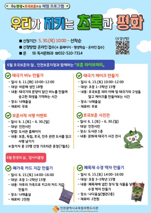 ÀÎõ±¤¿ª½Ã±³À°Ã»ºÎÆòµµ¼­°ü, 6¿ù È£±¹º¸ÈÆÀÇ ´Þ ¹× ȯ°æÀÇ ³¯ üÇè ÇÁ·Î±×·¥ ¿î¿µ