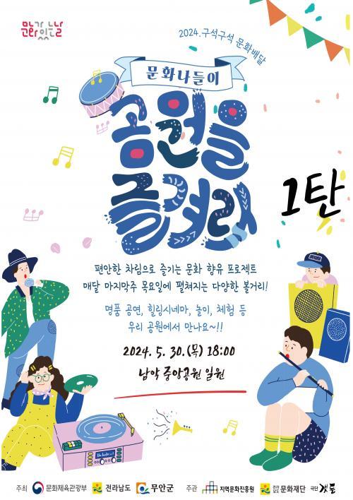 [½Åµ¿¾Æ¹æ¼Û=ÀÌÀº¼±±âÀÚ] Àü³² ¹«¾È±º(±º¼ö ±è»ê)Àº ¿À´Â 30ÀÏ 18½Ã¿¡ ³²¾ÇÁß¾Ó°ø¿ø¿¡¼­ ¹®È­³ªµéÀÌ ¡®°ø¿øÀ» Áñ°Ü¶ó¡¯¹®È­¿¹¼ú Çà»ç¸¦ °³ÃÖÇÑ´Ù. ¡®°ø¿¬À» Áñ°Ü¶ó¡¯ Çà»ç´Â ¹®È­Ã¼À°°ü±¤ºÎÀÇ ¡®2024 ¹®È­°¡ ÀÖ´Â ³¯ ±¸¼®±¸¼® ¹®È­¹è´Þ¡¯ °ø¸ð»ç¾÷¿¡ ¼±Á¤µÇ¾î ±¹ºñ 7¡¦