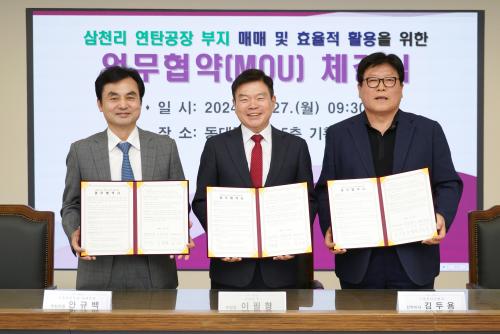 [½Åµ¿¾Æ¹æ¼Û µ¿´ë¹®±¸=À̽ŵ¿±âÀÚ]¼­¿ï µ¿´ë¹®±¸°¡ 27ÀÏ µ¿´ë¹®±¸ À̹®µ¿ ¼ÒÀç ¡®»ïõ¸® ¿¬Åº°øÀå ºÎÁöÀÇ ¸Å¸Å ¹× È¿À²Àû Ȱ¿ëÀ» À§ÇÑ ¾÷¹«Çù¾à¡¯À» ü°áÇß´Ù°í ¹àÇû´Ù. ¾÷¹«Çù¾àÀº ÀÌÇÊÇü µ¿´ë¹®±¸Ã»Àå, ´õºÒ¾î¹ÎÁÖ´ç ¾È±Ô¹é ±¹È¸ÀÇ¿ø(¼­¿ï µ¿´ë¹®±¸°©), ¢ß»ïõ¸®ÀÌ¡¦