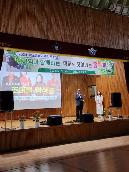 [½Åµ¿¾Æ¹æ¼Û Àü³²¿©¼ö=À̽ŵ¿±âÀÚ]°íÈﵵȭÁßÇб³(±³Àå ¹èÅÂÁø)´Â Çб³¿¹¼ú±³À° Áö¿ø »ç¾÷ÀÇ ÀÏȯÀ¸·Î Çлý¡¤Çкθð¡¤Áö¿ªÁֹεéÀ» ÃÊ´ëÇÏ¿© ¡¸2024. Çб³·Î ã¾Æ°¡´Â À½¾Çȸ¡¹¸¦ °³ÃÖÇÏ¿© ¹Ú¼ö°¥Ã¤¸¦ ¹Þ¾Ò´Ù. ƯÈ÷ ÀÎÁ¢ÇÑ µµÈ­°íµîÇб³ Çлýµéµµ ÇÔ²² ÃÊ´ëÇÏ¿© Æò¼Ò Áö¡¦
