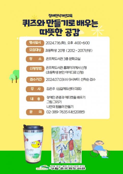 ÀºÆò±¸ Àº¶ß¶ôµµ¼­°ü, Àå¾ÖÀνݳ¼±±³À° ¡®ÄûÁî¿Í ¸¸µé±â·Î ¹è¿ì´Â µû¶æÇÑ °ø°¨¡¯ ÁøÇà