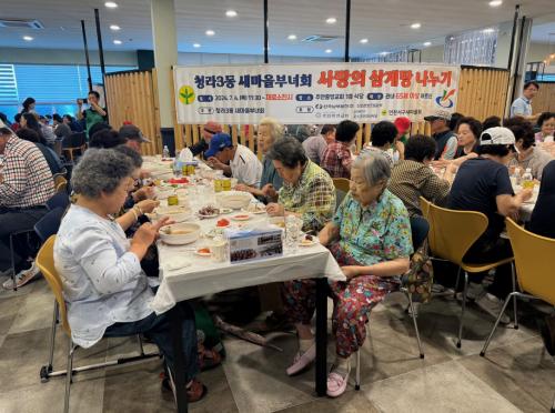 [½Åµ¿¾Æ¹æ¼Û ÀÎõ= À±¹Î½Ä±âÀÚ] ÀÎõ ¼­±¸ û¶ó3µ¿ »õ¸¶À»ºÎ³àȸ(ȸÀå ¹®¹Ì¿Á)´Â Áö³­ 4ÀÏ ¾î¸£½ÅµéÀÇ °Ç°­ÇÑ ¿©¸§³ª±â¸¦ À§ÇØ ¡¸»ç¶ûÀÇ »ï°èÅÁ ³ª´©±â¡¹Çà»ç¸¦ °³ÃÖÇÏ¿´´Ù. À̹ø Çà»ç´Â û¶ó3µ¿ »õ¸¶À»ºÎ³àȸ°¡ ÁÖ°üÇϰí, Çѱ¹³²ºÎ¹ßÀü(ÁÖ) ½ÅÀÎõºûµå¸²º»ºÎ¿Í Æ÷½º¡¦