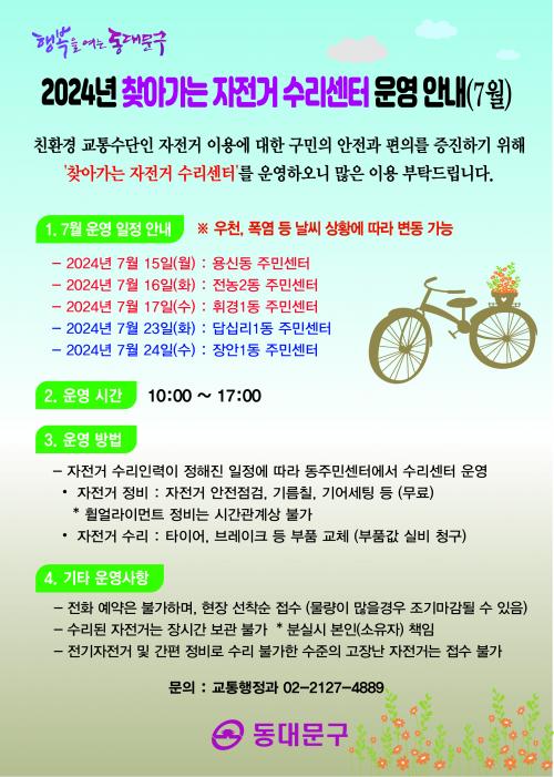 [½Åµ¿¾Æ¹æ¼Û µ¿´ë¹®±¸=À̽ŵ¿±âÀÚ]¼­¿ï µ¿´ë¹®±¸°¡ ¡®Ã£¾Æ°¡´Â ÀÚÀü°Å ¼ö¸®¼¾ÅÍ¡¯¸¦ ½Ã¹ü ¿î¿µÇÑ´Ù. ±¸´Â °¡±î¿î °÷¿¡ ¼ö¸®¼¾ÅͰ¡ ¾ø¾î ÀÚÀü°Å ¼ö¸®¿¡ ¾î·Á¿òÀ» °Þ´Â ÁÖ¹ÎÀ» À§ÇØ 7¿ù ÇÑ ´Þ°£ 5°³ µ¿Áֹμ¾ÅÍ¿¡¼­ ¡®ÀÚÀü°Å ¼ö¸® ¼­ºñ½º¡¯¸¦ Á¦°øÇÑ´Ù. ¼ö¸®¼¾ÅÍ¿¡¡¦