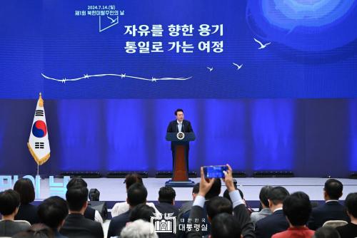 [½Åµ¿¾Æ¹æ¼Û=À̽ŵ¿±âÀÚ] À±¼®¿­ ´ëÅë·ÉÀº ¿À´Ã(7/14, ÀÏ) ¿ÀÀü û¿Í´ë ¿µºó°ü¿¡¼­ °³ÃÖµÈ ¡®Á¦1ȸ ºÏÇÑ ÀÌÅ»ÁÖ¹ÎÀÇ ³¯ ±â³ä½Ä¡¯¿¡ Âü¼®Çß½À´Ï´Ù. ¡®ºÏÇÑÀÌÅ»ÁÖ¹ÎÀÇ ³¯¡¯Àº ´ëÅë·ÉÀÌ Áö³­ 1¿ù 16ÀÏ ±¹¹«È¸ÀÇ¿¡¼­ ºÏÇÑÀÌÅ»ÁÖ¹ÎÀ» µû¶æÇÏ°Ô Æ÷¿ëÇÏ°í ¼º°øÀûÀÎ Á¤ÂøÀ» °Ý¡¦