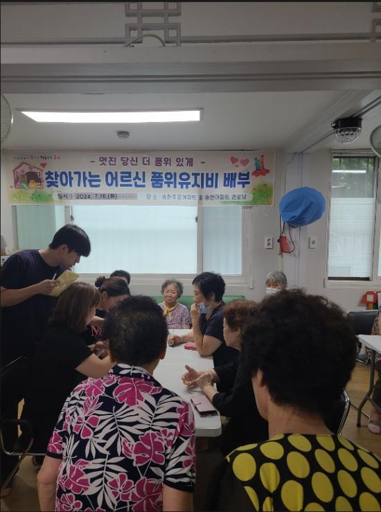 [½Åµ¿¾Æ¹æ¼Û ÀÎõ= À±¹Î½Ä±âÀÚ] ÀÎõ µ¿±¸ ¼ÛÇö3µ¿ ÇàÁ¤º¹Áö¼¾ÅÍ(µ¿Àå Àå¹Ì¾Ö)´Â °í·É ¹× °Åµ¿ÀÌ ºÒÆíÇÑ ¾î¸£½ÅÀ» À§ÇÑ ¡®Ã£¾Æ°¡´Â ¾î¸£½Å ǰÀ§À¯Áöºñ ¹èºÎ¡¯ »ç¾÷À» ÁøÇàÇß´Ù°í ¹àÇû´Ù. À̹ø »ç¾÷Àº °ü³» °æ·Î´ç µîÀ» ¹æ¹®ÇÏ¿© ¾î¸£½Å¿¡°Ô ǰÀ§À¯Áöºñ¸¦ ¹èºÎÇÏ´Â »ç¡¦