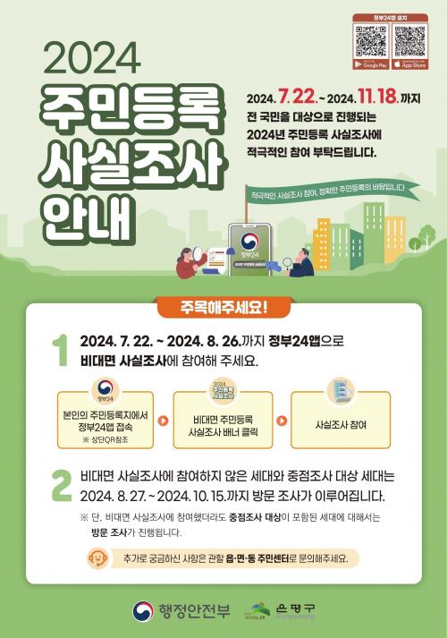 [½Åµ¿¾Æ¹æ¼Û=À̽ŵ¿±âÀÚ] ÀºÆò±¸(±¸Ã»Àå ±è¹Ì°æ)´Â ¿À´Â 11¿ù 18ÀϱîÁö ¡®2024³â Áֹεî·Ï »ç½ÇÁ¶»ç¡¯¸¦ ½Ç½ÃÇÑ´Ù°í ¹àÇû´Ù. ±¸´Â °ü³» Áֹεî·Ï µÅ ÀÖ´Â ¸ðµç ¼¼´ë¸¦ ´ë»óÀ¸·Î ºñ´ë¸é-µðÁöÅÐ Á¶»ç(ÀÌÇÏ ¡®ºñ´ë¸é Á¶»ç¡¯) ¶Ç´Â ¹æ¹® Á¶»ç¸¦ ÁøÇàÇÑ´Ù. ºñ´ë¸é Á¶»ç¡¦