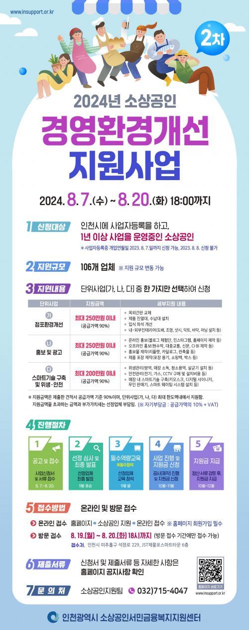 [½Åµ¿¾Æ¹æ¼Û ÀÎõ= À±¹Î½Ä±âÀÚ] ÀÎõ±¤¿ª½Ã´Â Áö¿ª ¼Ò»ó°øÀεéÀÇ °æ¿µ ¾ÈÁ¤È­¸¦ µµ¸ðÇϱâ À§ÇØ ¿À´Â 8¿ù 20ÀϱîÁö¡®2024³â 2Â÷ ¼Ò»ó°øÀÎ °æ¿µÈ¯°æ°³¼± Áö¿ø»ç¾÷¡¯´ë»óÀÚ¸¦ ¸ðÁýÇÑ´Ù°í ¹àÇû´Ù. À̹ø »ç¾÷Àº ¼Ò»ó°øÀεéÀÇ °æ¿µ ¾Ö·Î»çÇ×À» ÇØ°áÇÏ°í ¾ÈÁ¤ÀûÀÎ °æ¿µÈ¯°æ¡¦