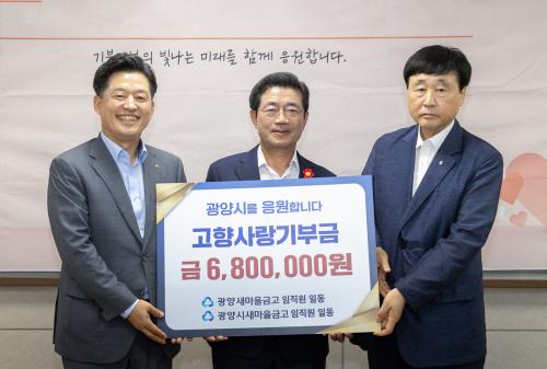[½Åµ¿¾Æ¹æ¼Û±¤¾ç=¹Ú±¤¿Á±âÀÚ] ±¤¾ç½Ã`´Â 9ÀÏ(±Ý) ±¤¾ç»õ¸¶À»±Ý°í¿Í ±¤¾ç½Ã»õ¸¶À»±Ý°í ÀÓÁ÷¿ø 68¸íÀÌ °íÇâ»ç¶û±âºÎÁ¦ Ȱ¼ºÈ­¿Í ±âºÎ¹®È­ È®»êÀ» À§ÇØ »óÈ£±âºÎ¿¡ µ¿ÂüÇØ °íÇâ»ç¶û±âºÎ±Ý 680¸¸ ¿øÀ» Àü´ÞÇß´Ù°í ¹àÇû´Ù. °ü³» »õ¸¶À»±Ý°í¿¡¼­ °íÇâ»ç¶û±âºÎÁ¦¿¡ µ¿ÂüÇÑ °Í¡¦