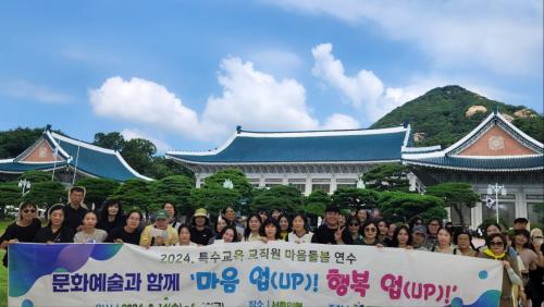 [½Åµ¿¾Æ¹æ¼Û=À̽ŵ¿±âÀÚ]Àü¶ó³²µµ±³À°Ã»(±³À°°¨ ±è´ëÁß)Àº 14~16ÀÏ ¼­¿ï ÀÏ¿ø¿¡¼­ µµ³» Ư¼ö±³À° ±³Á÷¿ø 46¸íÀ» ´ë»óÀ¸·Î ¡®¸¶À½µ¹º½ ¿¬¼ö¡¯¸¦ ¿î¿µÇß´Ù. ¡®¹®È­¿¹¼ú°ú ÇÔ²² ¸¶À½ ¾÷(UP) Çູ ¾÷(UP)¡¯À» ÁÖÁ¦·Î ÇÑ À̹ø ¿¬¼ö´Â ´Ù¾çÇÑ ¿µ¿ªÀÇ Ã¼ÇèÀ» ÅëÇØ Ư¼ö±³À° ¡¦