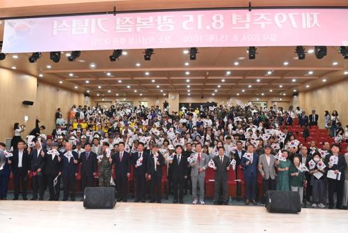 [½Åµ¿¾Æ¹æ¼Û=À̽ŵ¿±âÀÚ]Çϳ²½Ã(½ÃÀå ÀÌÇöÀç)´Â 15ÀÏ ±¤º¹È¸¿ø, º¸ÈÆ´Üü, û¼Ò³â¡¤¾î¸°ÀÌ µî ½Ã¹Î 400¿© ¸íÀÌ Âü¼®ÇÑ °¡¿îµ¥ Á¦79Áֳ⠱¤º¹Àý ±â³ä½ÄÀ» °³ÃÖÇß´Ù. Çϳ²½Ãû ´ë°­´ç¿¡¼­ ¿­¸° À̳¯ ±â³ä½ÄÀº ¡®±¤º¹! ±× ³¯ÀÇ ÇÔ¼º, ´ëÇѹα¹ÀÇ ¹Ì·¡¸¦ ÇâÇØ!¡¯¸¦ ÁÖÁ¦¡¦
