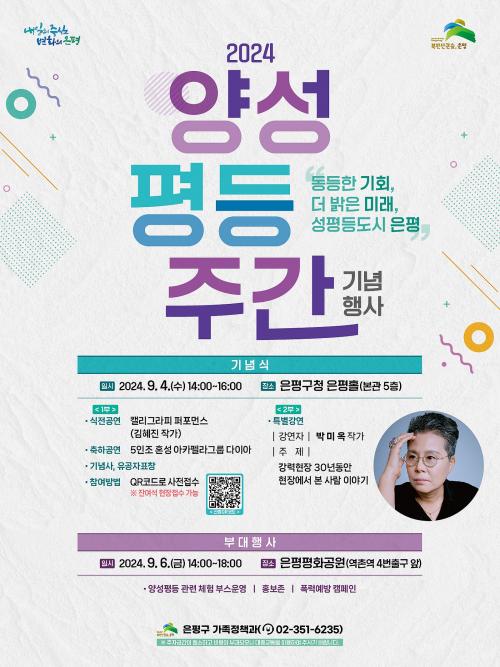 [½Åµ¿¾Æ¹æ¼Û=À̽ŵ¿±âÀÚ] ÀºÆò±¸(±¸Ã»Àå ±è¹Ì°æ)´Â Æòµî ¹®È­ È®»êÀ» À§ÇÑ ¡®¾ç¼ºÆòµîÁÖ°£ ±â³äÇà»ç¡¯¸¦ ³»´Þ 4Àϰú 6ÀÏ °³ÃÖÇÑ´Ù°í ¹àÇû´Ù. ¾ç¼ºÆòµîÁÖ°£Àº 9¿ù 1ÀϺÎÅÍ 7ÀϱîÁö·Î, Á¤Ä¡, °æÁ¦, »çȸ, ¹®È­ÀÇ ¸ðµç ¿µ¿ª¿¡¼­ ¼ºº°¿¡ µû¸¥ Â÷º° ¾øÀÌ ÆòµîÇÑ »çȸ¸¦ ¡¦