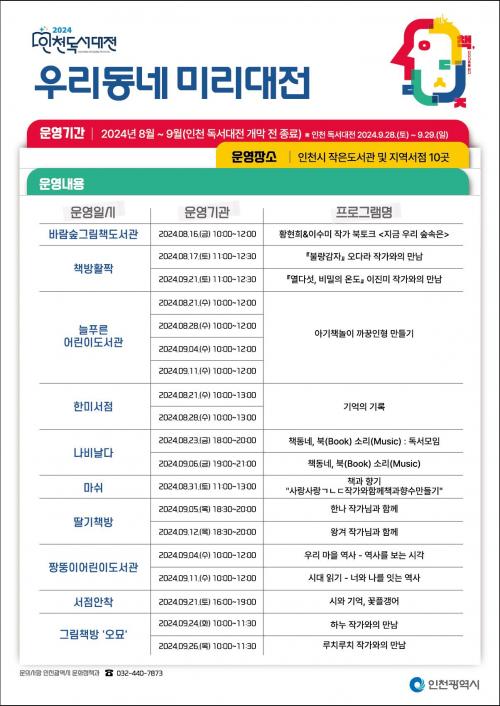 [½Åµ¿¾Æ¹æ¼Û ÀÎõ= À±¹Î½Ä±âÀÚ]ÀÎõ±¤¿ª½Ã°¡ 9¿ù 28ÀϺÎÅÍ ÀÌÆ²°£ ¿­¸®´Â ¡®2024 ÀÎõ µ¶¼­´ëÀü¡¯À» ¾ÕµÎ°í »çÀü Çà»çÀÎ ¡®¿ì¸®µ¿³× ¹Ì¸®´ëÀü¡¯À» ¿î¿µÇÑ´Ù. ¡®¿ì¸®µ¿³× ¹Ì¸®´ëÀü¡¯Àº °ü³» ÀÛÀºµµ¼­°ü°ú Áö¿ª ¼­Á¡ÀÌ ÇÔ²²Çϴ Ư»ö ÀÖ´Â ¹®È­ ÇÁ·Î±×·¥À¸·Î, ÀÎõ µ¶¡¦