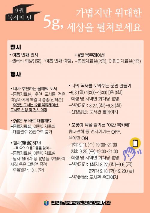 [½Åµ¿¾Æ¹æ¼Û=À̽ŵ¿±âÀÚ] Àü¶ó³²µµ±³À°Ã»±¤¾çµµ¼­°ü(°üÀå ½É»ó¹Ì)Àº 2024³â 9¿ù µ¶¼­ÀÇ ´ÞÀ» ¸ÂÀÌÇÏ¿© ´Ù¾çÇÑ Çà»ç¸¦ ¿î¿µÇÑ´Ù. °ø¿¬À¸·Î´Â À¯¾Æ ¹× Ãʵî ÀúÇгâÀ» ´ë»óÀ¸·Î ¸íÀÛ µ¿È­¸¦ ´Ù¾çÇÑ À帣ÀÇ À½¾Ç°ú ÇÔ²² Àü´ÞÇÏ´Â ¾Æµ¿ À½¾Ç±ØÀ» 9¿ù 25ÀÏ¿¡ ÁøÇàÇÑ´Ù. ¡¦