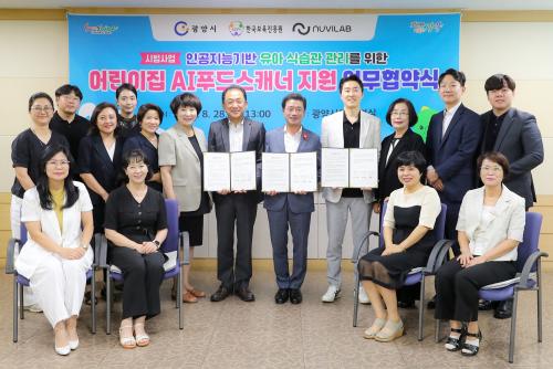 [½Åµ¿¾Æ¹æ¼Û±¤¾ç=¹Ú±¤¿Á±âÀÚ] ±¤¾ç½Ã´Â 28ÀÏ ½Ãû Á¢°ß½Ç¿¡¼­ Çѱ¹º¸À°ÁøÈï¿ø ¹× ½ºÅ¸Æ®¾÷(½Å»ý±â¾÷) ¢ß´©ºñ·¦°ú ±¤ÁÖ‧Àü³² ÃÖÃÊ·Î ¡®¾î¸°ÀÌÁý AIǪµå½ºÄ³³Ê Áö¿ø¡¯ ½Ã¹ü»ç¾÷ ÃßÁøÀ» À§ÇÑ ¾÷¹« Çù¾à½ÄÀ» °³ÃÖÇß´Ù°í ¹àÇû´Ù. Á¤ÀÎÈ­ ±¤¾ç½ÃÀå, ³ª¼º¿õ Çѱ¹º¸À°Áø¡¦