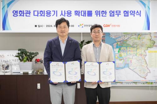 [½Åµ¿¾Æ¹æ¼Û ÀÎõ= À±¹Î½Ä±âÀÚ] ÀÎõ ¼­±¸(±¸Ã»Àå °­¹ü¼®)´Â Áö³­ 28ÀÏ CGVÀÎõ°¡Á¤°ú ÇÔ²² 「¿µÈ­°ü ´Ùȸ¿ë±â »ç¿ë È®´ë¸¦ À§ÇÑ ¾÷¹«Çù¾à」À» ü°áÇß´Ù°í ¹àÇû´Ù. À̳¯ Çù¾à½ÄÀº °­¹ü¼® ¼­±¸Ã»ÀåÀ» ºñ·ÔÇØ ¹Ú±âÈ« CGVÀÎõ°æ±â¿µ¾÷ÆÀÀåÀÌ Âü¼®ÇÑ °¡¿î¡¦