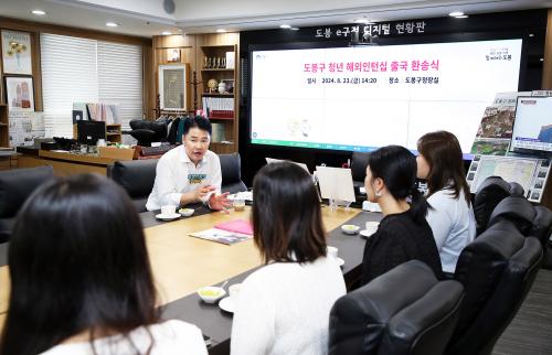 [½Åµ¿¾Æ¹æ¼Û=À̽ŵ¿±âÀÚ]µµºÀ±¸(±¸Ã»Àå ¿À¾ð¼®)´Â Áö³­ 8¿ù 23ÀÏ µµºÀ±¸Ã»Àå½Ç¿¡¼­ û³â ÇØ¿ÜÀÎÅÏ½Ê Ãâ±¹ ȯ¼Û½ÄÀ» ¿­¾ú´Ù. À̳¯ ȯ¼Û½Ä¿¡´Â ¿À¾ð¼® µµºÀ±¸Ã»ÀåÀ» ºñ·ÔÇØ ¿¬³» ¹Ì±¹À¸·Î Ãâ±¹À» ¾ÕµÐ ÇØ¿ÜÀÎÅÏ½Ê Âü¿©ÀÚ 4¸íÀÌ Âü¼®Çß´Ù. ȯ¼Û½ÄÀº ±¸Ã»Àå Àλ縻, ¡¦