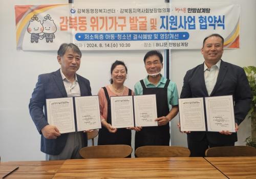°¨ºÏµ¿ ÇàÁ¤º¹Áö¼¾ÅÍ․Áö¿ª»çȸº¸ÀåÇùÀÇü․Çã´Ï¹® Çѹæ»ï°èÅÁ, À§±â°¡±¸ ¹ß±¼ ¹× Áö¿øÀ» À§ÇÑ Çù¾à ü°á