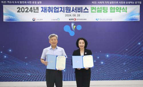 [½Åµ¿¾Æ¹æ¼Û¿©¼ö=±è±â³² ±âÀÚ] ¿©¼ö½Ãµµ½Ã°ü¸®°ø´Ü(ÀÌ»çÀå ±èÀ¯È­)Àº Áö³­ 8¿ù 28ÀÏ, ³ë»ç¹ßÀüÀç´Ü, Çѱ¹°æ¿µÀÎÁõ¿ø°ú ÇÔ²² ÀçÃë¾÷Áö¿ø¼­ºñ½º ±â¾÷ ÄÁ¼³ÆÃÀ» À§ÇÑ ¾÷¹«Çù¾àÀ» ü°áÇϰí 9¿ùºÎÅÍ 12ÁÖ¿¡ °ÉÃÄ ÄÁ¼³ÆÃÀ» ½Ç½ÃÇÒ ¿¹Á¤À̶ó°í ¹àÇû´Ù. ÀçÃë¾÷Áö¿ø¼­ºñ¡¦