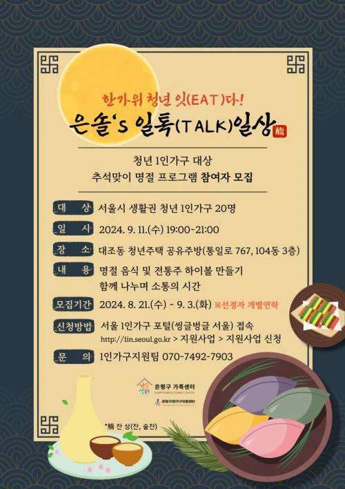 [½Åµ¿¾Æ¹æ¼Û=À̽ŵ¿±âÀÚ] ÀºÆò±¸ ±¸Ã»Àå ±è¹Ì°æÀº È¥ÀÚ¼­ Ãß¼®À» Áö³»´Â û³â 1Àΰ¡±¸¸¦ À§ÇØ ¿À´Â 11ÀÏ ¡®ÇѰ¡À§ û³âÀ» ÀÕ´Ù(EAT)! ¡®Àº¼Ö¡¯s ÀÏÅåÀÏ»ó¡¯ ¼Ò¼È´ÙÀ̴ס®À» ¿î¿µÇÑ´Ù°í ¹àÇû´Ù. °Ç°­ÇÑ ½Ä»ç¸¦ ì±â±â Èûµç û³â 1Àΰ¡±¸¸¦ À§ÇÑ ¡®Àº¼ÖeÀ½ ¼Ò¼È´ÙÀ̴ס¯¡¦
