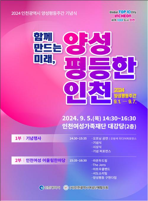 [½Åµ¿¾Æ¹æ¼Û ÀÎõ=À±¹Î½Ä±âÀÚ]ÀÎõ±¤¿ª½Ã´Â 2024³â ¾ç¼ºÆòµîÁÖ°£(9¿ù 1ÀÏ ~ 9¿ù 7ÀÏ)À» ¸Â¾Æ ¿À´Â 9¿ù 5ÀÏ ÀÎõ¿©¼º°¡Á·Àç´Ü ´ë°­´ç¿¡¼­ ±â³äÇà»ç¸¦ °³ÃÖÇÑ´Ù. ¾ç¼ºÆòµîÁÖ°£Àº ¾ç¼ºÆòµî±âº»¹ý¿¡ µû¶ó ¾ç¼ºÆòµî ½ÇÇöÀ» ÃËÁøÇÏ°í ½Ã¹ÎÀÇ °ü½ÉÀ» ³ôÀ̱â À§ÇØ ¾ç¼ºÆòµî±â¡¦