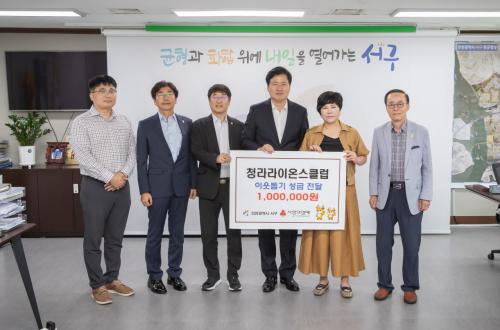 [½Åµ¿¾Æ¹æ¼Û ÀÎõ=À±¹Î½Ä±âÀÚ]ÀÎõ ¼­±¸(±¸Ã»Àå °­¹ü¼®)´Â 9¿ù 4ÀÏ, û¶ó¶óÀ̿½ºÅ¬·´(ȸÀå Á¤ÅÂÀ±)À¸·ÎºÎÅÍ ÀÌ¿ôµ½±â ¼º±Ý 100¸¸¿øÀ» Àü´Þ¹Þ¾Ò´Ù. À̳¯ Àü´Þ¹ÞÀº ¼º±ÝÀº ¼­±¸ Àú¼Òµæ ÁÖ¹ÎÀ» À§ÇÑ »çȸº¹Áö »ç¾÷ºñ·Î ¾²ÀÏ ¿¹Á¤ÀÌ´Ù. û¶ó¶óÀ̿½ºÅ¬·´Àº ±¹Á¦Àû ¡¦