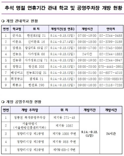 [½Åµ¿¾Æ¹æ¼Û=À̽ŵ¿±âÀÚ] µ¿´ë¹®±¸(±¸Ã»Àå ÀÌÇÊÇü)´Â ¹æ¹®°´, ¿ª±Í¼º°´ µîÀÇ ÁÖÂ÷ ÆíÀǸ¦ À§ÇØ Ãß¼® ¿¬ÈޱⰣÀÎ 9¿ù 14ÀϺÎÅÍ 18ÀϱîÁö 5Àϰ£ Çб³ ¹× °ø¿µÁÖÂ÷Àå 14°³¼Ò¸¦ ¹«·á·Î Àӽà °³¹æÇÑ´Ù. Ãß¼® ¿¬ÈÞµ¿¾È ¹«·á °³¹æÇÏ´Â Çб³ ÁÖÂ÷ÀåÀº ±ºÀÚÃʵîÇб³¸¦ Æ÷ÇÔÇÑ ¡¦