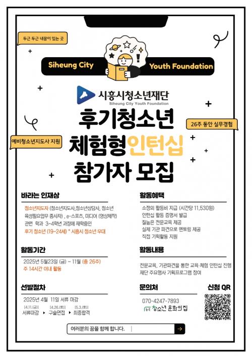 [½Åµ¿¾Æ¹æ¼Û ½ÃÈï½Ã=À̽ŵ¿±âÀÚ] ½ÃÈï½Ãû¼Ò³âÀç´ÜÀº û¼Ò³â Ȱµ¿¿¡ °ü½É ÀÖ´Â ´Ù¾çÇÑ Àü°øÀÇ Èıâ û¼Ò³âµéÀ» ´ë»óÀ¸·Î üÇèÇü ÀÎÅϽÊÀ» ÁøÇàÇÑ´Ù. û¼Ò³âÀç´ÜÀº À̹ø ÇÁ·Î±×·¥À» ÅëÇØ û¼Ò³â Ȱµ¿ ¹× º¸È£ º¹Áö, e-½ºÆ÷Ã÷, ¹Ìµð¾î Àü°ø»ýÀ» ¼±¹ßÇØ ½Ç¹« °æÇè°ú Àü¹® ±³¡¦