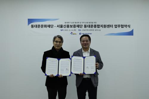 µ¿´ë¹®¹®È­Àç´Ü¡¤¼­¿ï½Å¿ëº¸ÁõÀç´Ü µ¿´ë¹®Á¾ÇÕÁö¿ø¼¾ÅÍ, Áö¿ª »ó±Ç Ȱ¼ºÈ­ ¹× ¹®È­¿¹¼ú »ó»ý¹ßÀü ¾÷¹«Çù¾à ü°á